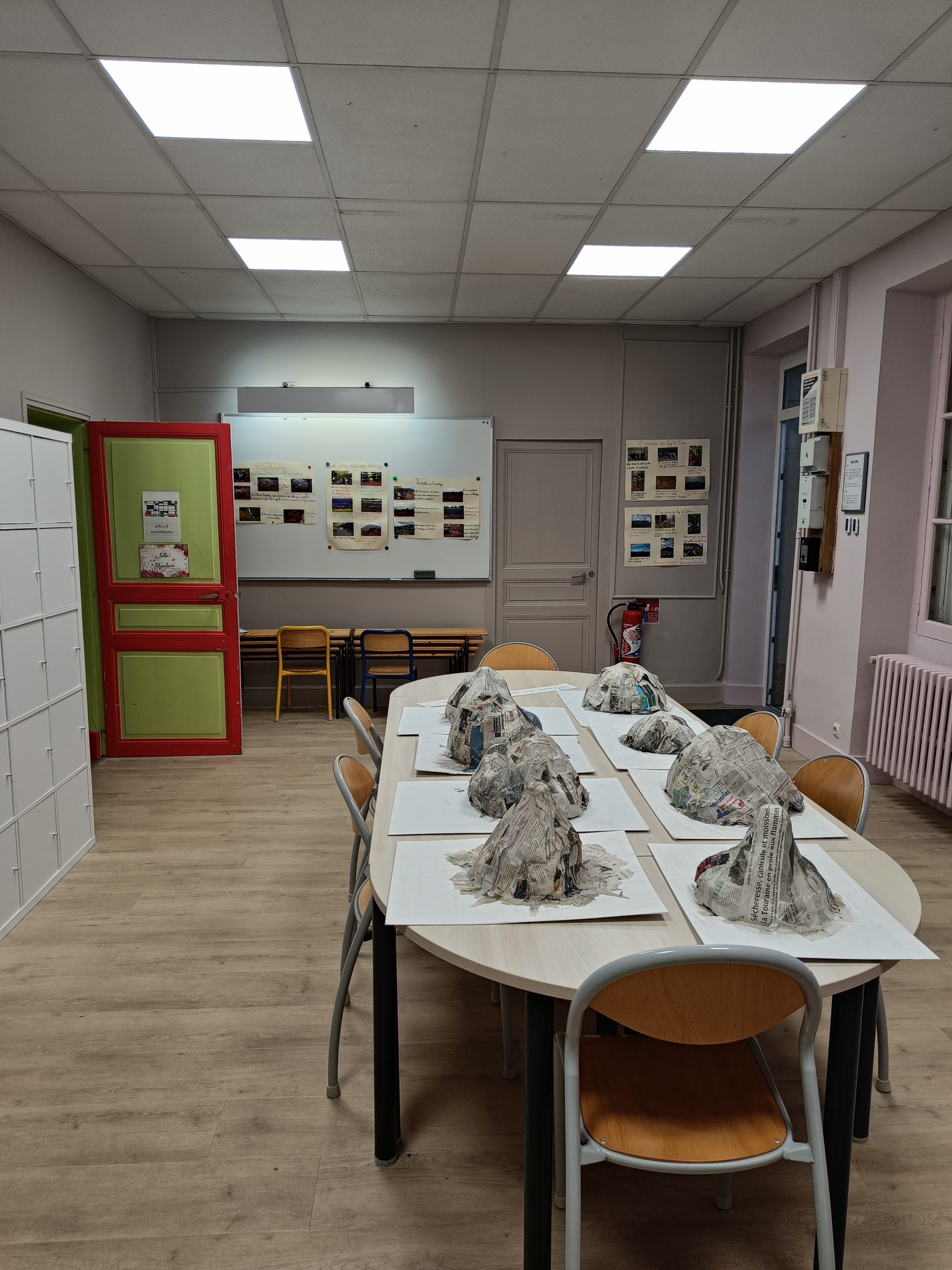 Chez les CM, retour sur le voyage en Auvergne qui s’est déroulé avec les 6e et les 5e, panneaux explicatifs et volcans en construction.