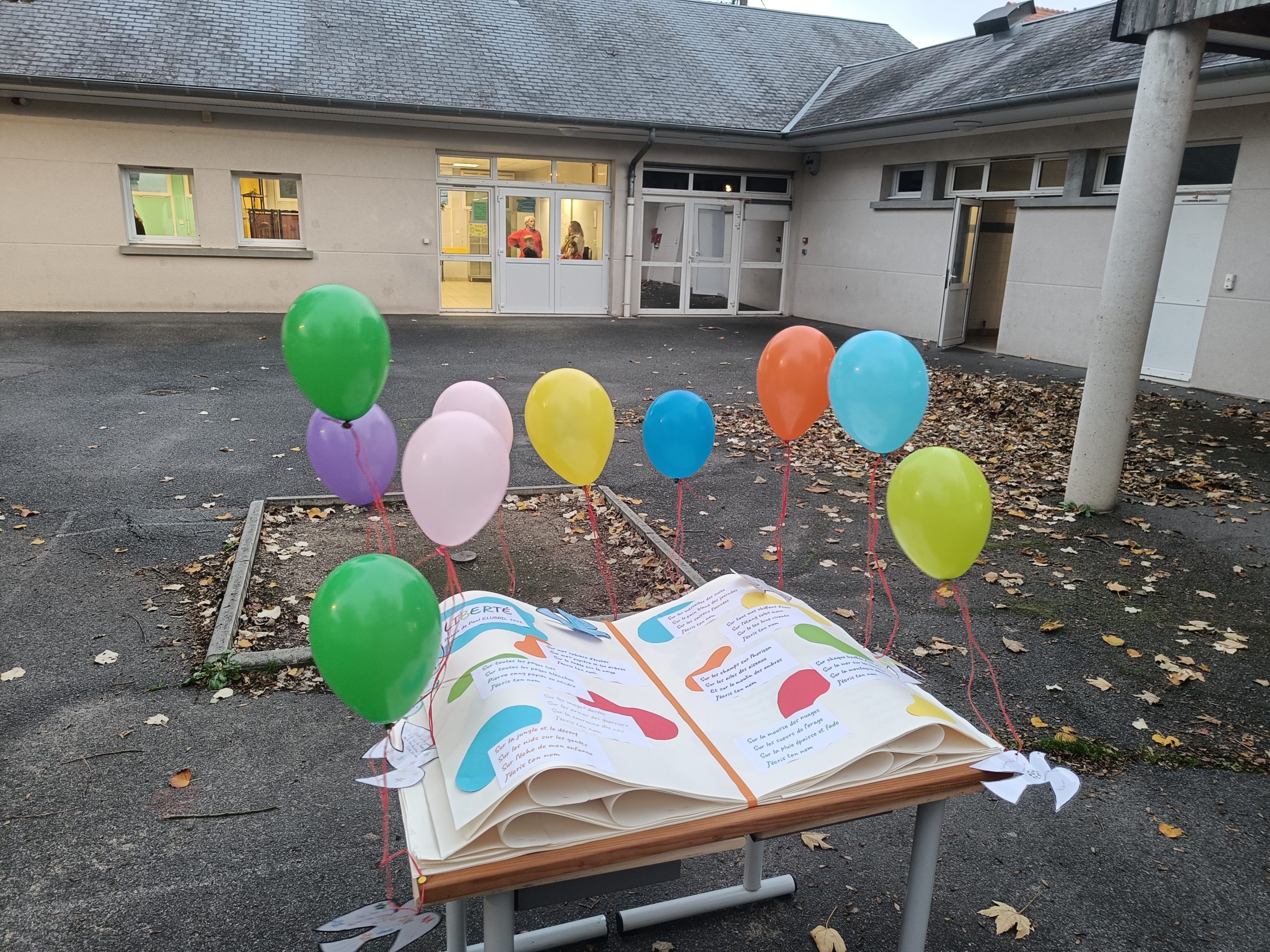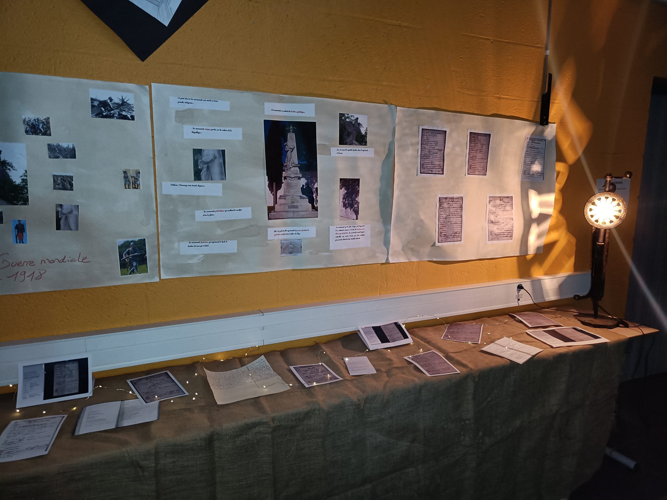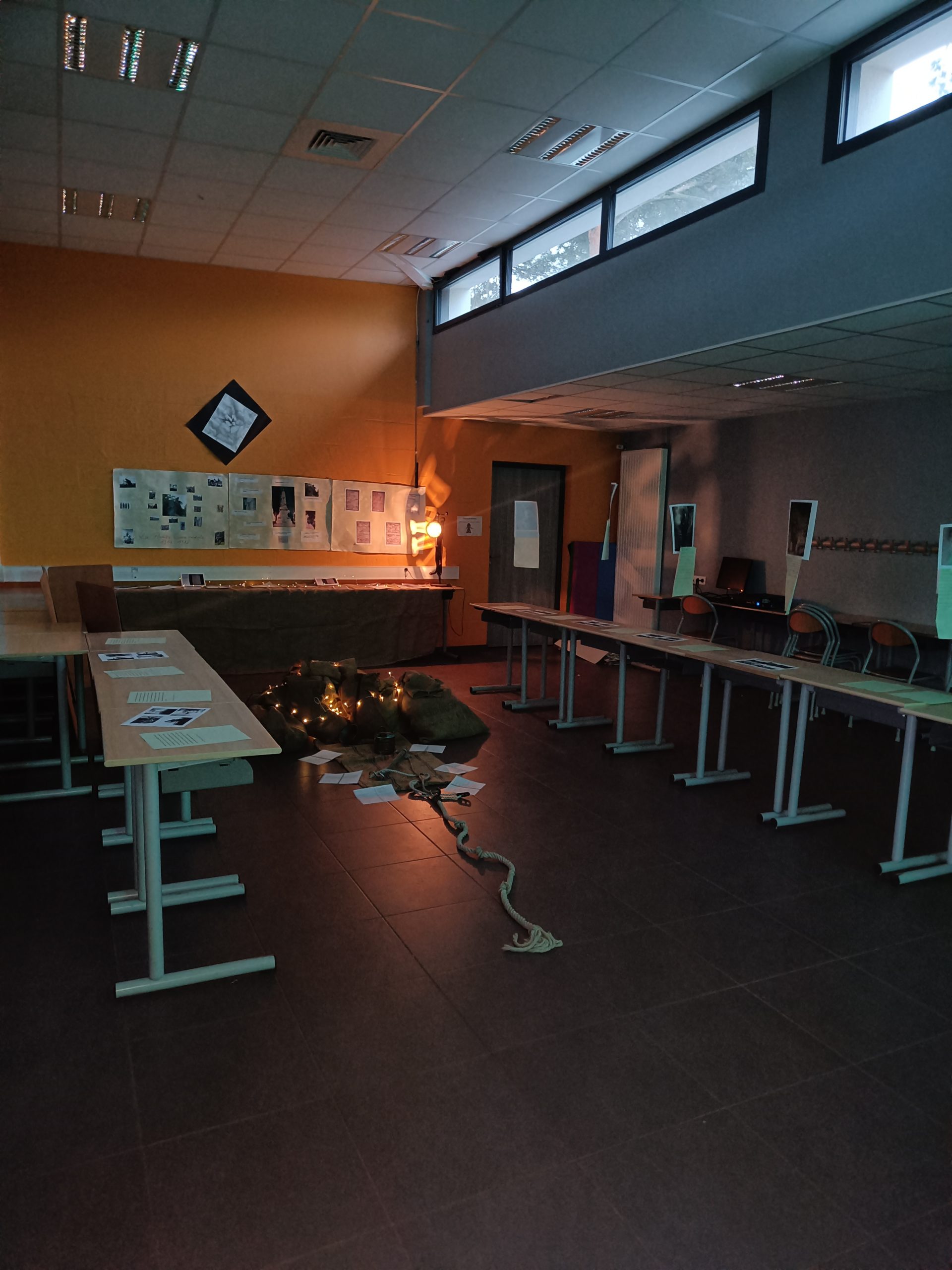 Côté collège, la libraire de Bourgueil, Mme Cassagnes, était présente en salle d’étude pour proposer des livres sur notre thème de la mémoire et du souvenir. Dans la cour, exposition sur les lettres de poilus illustrées par les élèves de troisièmes ainsi que des rédactions des plus beaux souvenirs des élèves et du grand livre de la liberté. En salle des arts, immersion dans une tranchée avec la lecture des lettres de poilus enregistrées par les élèves.