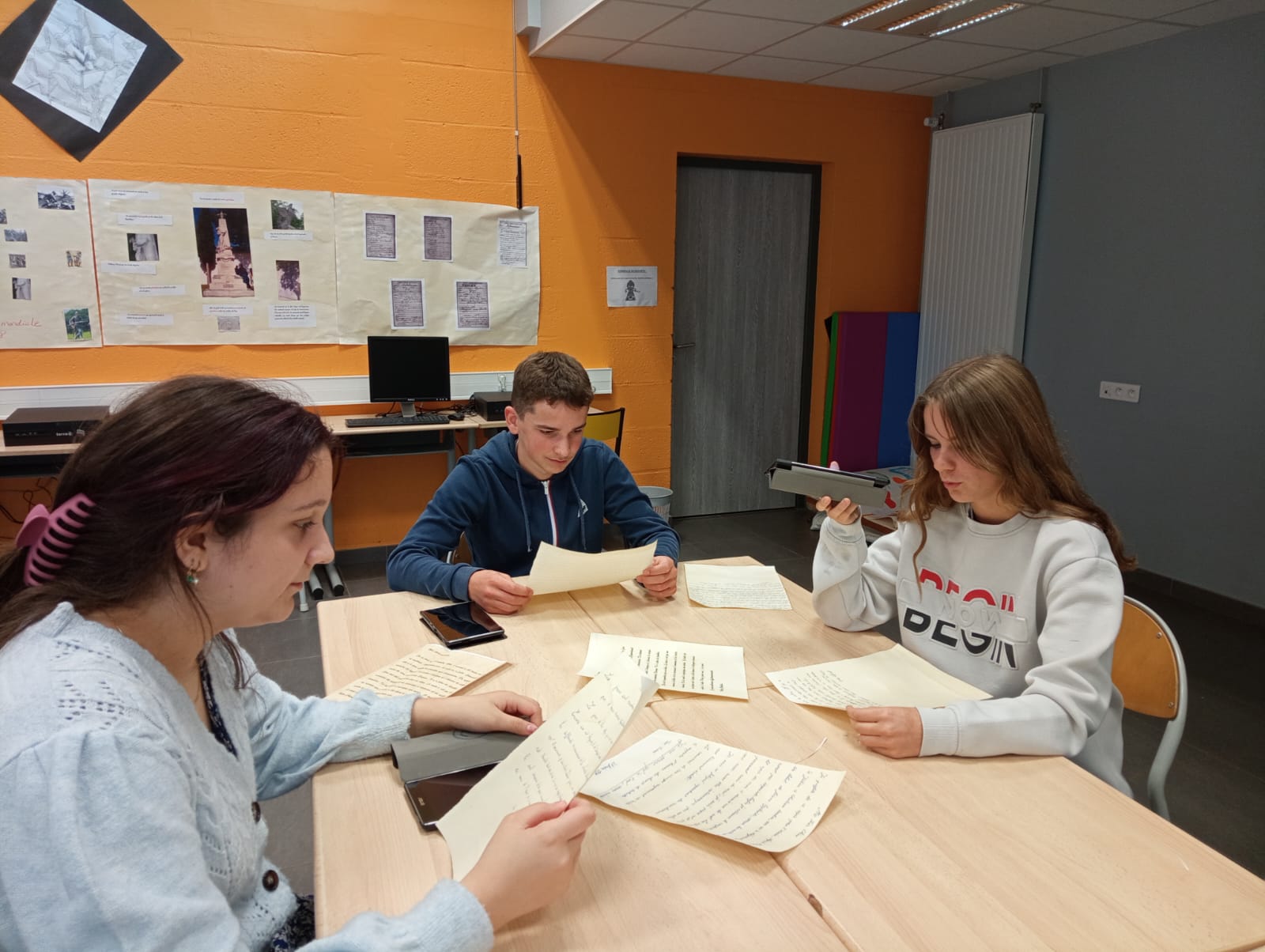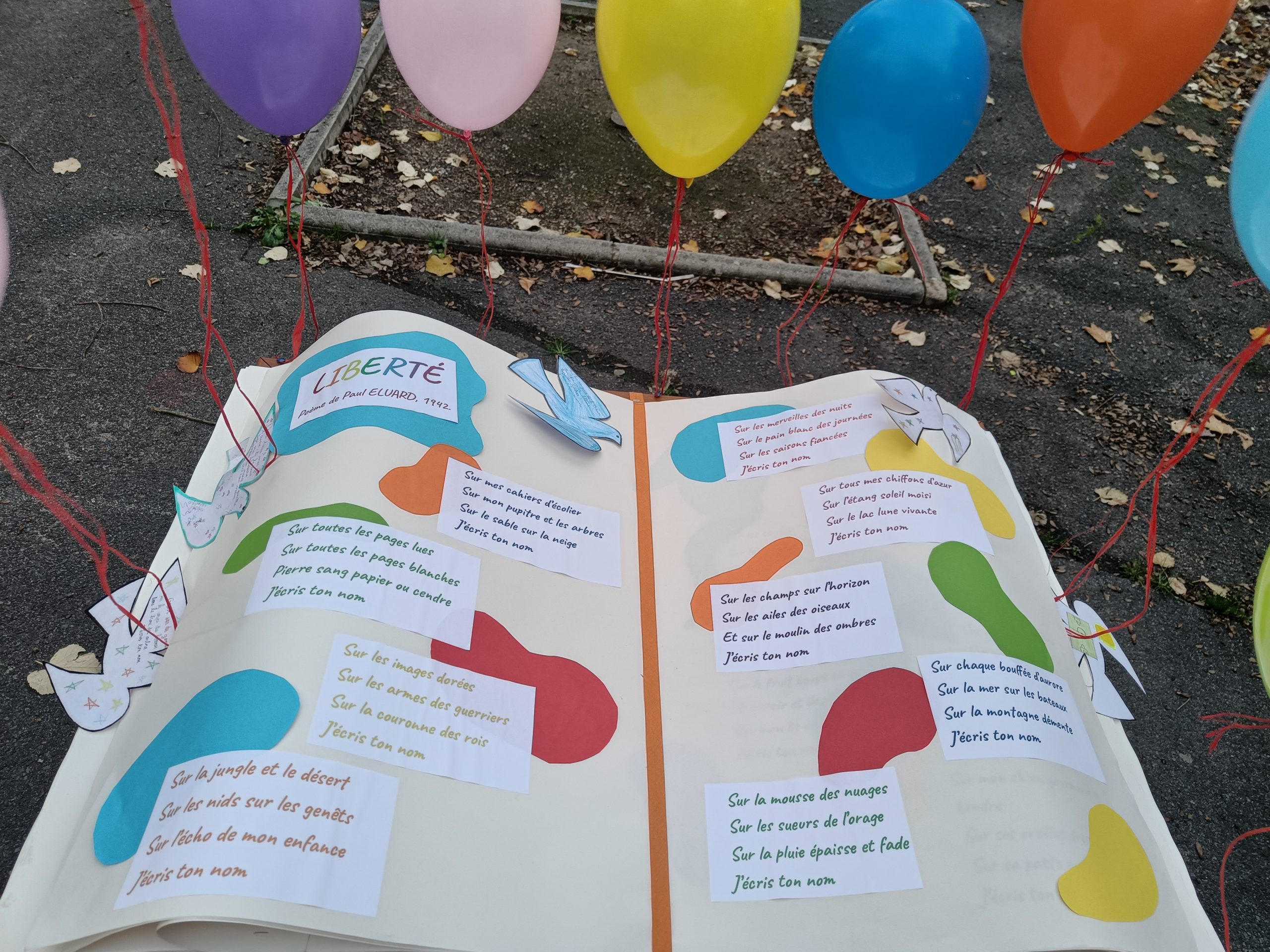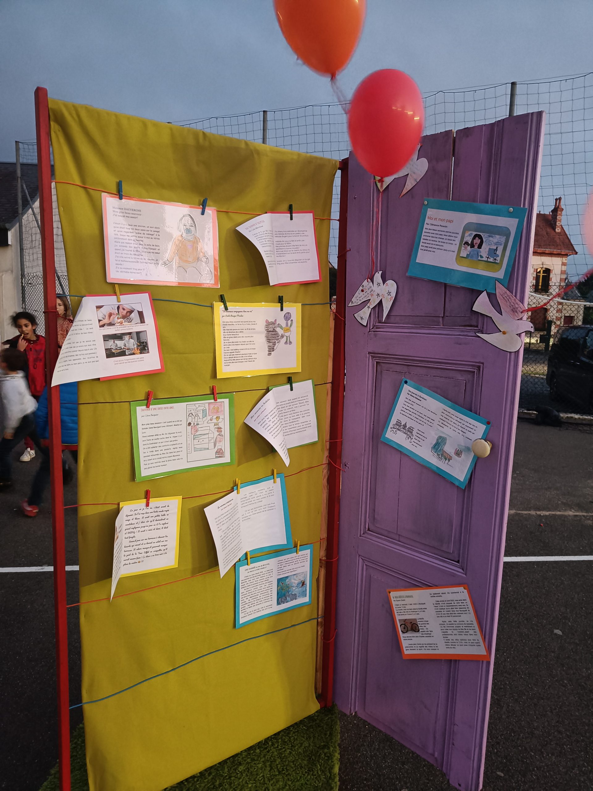 Côté collège, la libraire de Bourgueil, Mme Cassagnes, était présente en salle d’étude pour proposer des livres sur notre thème de la mémoire et du souvenir. Dans la cour, exposition sur les lettres de poilus illustrées par les élèves de troisièmes ainsi que des rédactions des plus beaux souvenirs des élèves et du grand livre de la liberté. En salle des arts, immersion dans une tranchée avec la lecture des lettres de poilus enregistrées par les élèves.