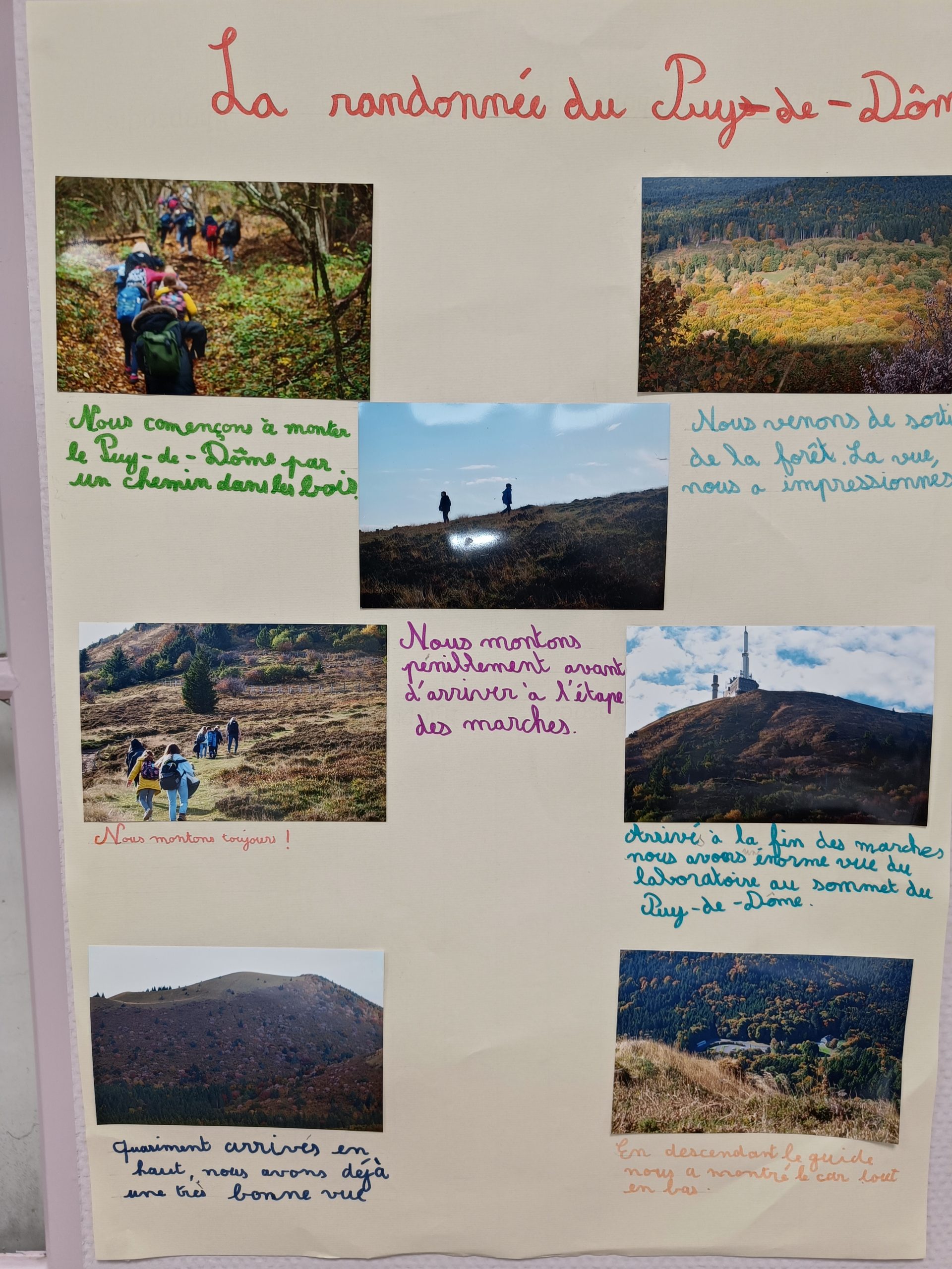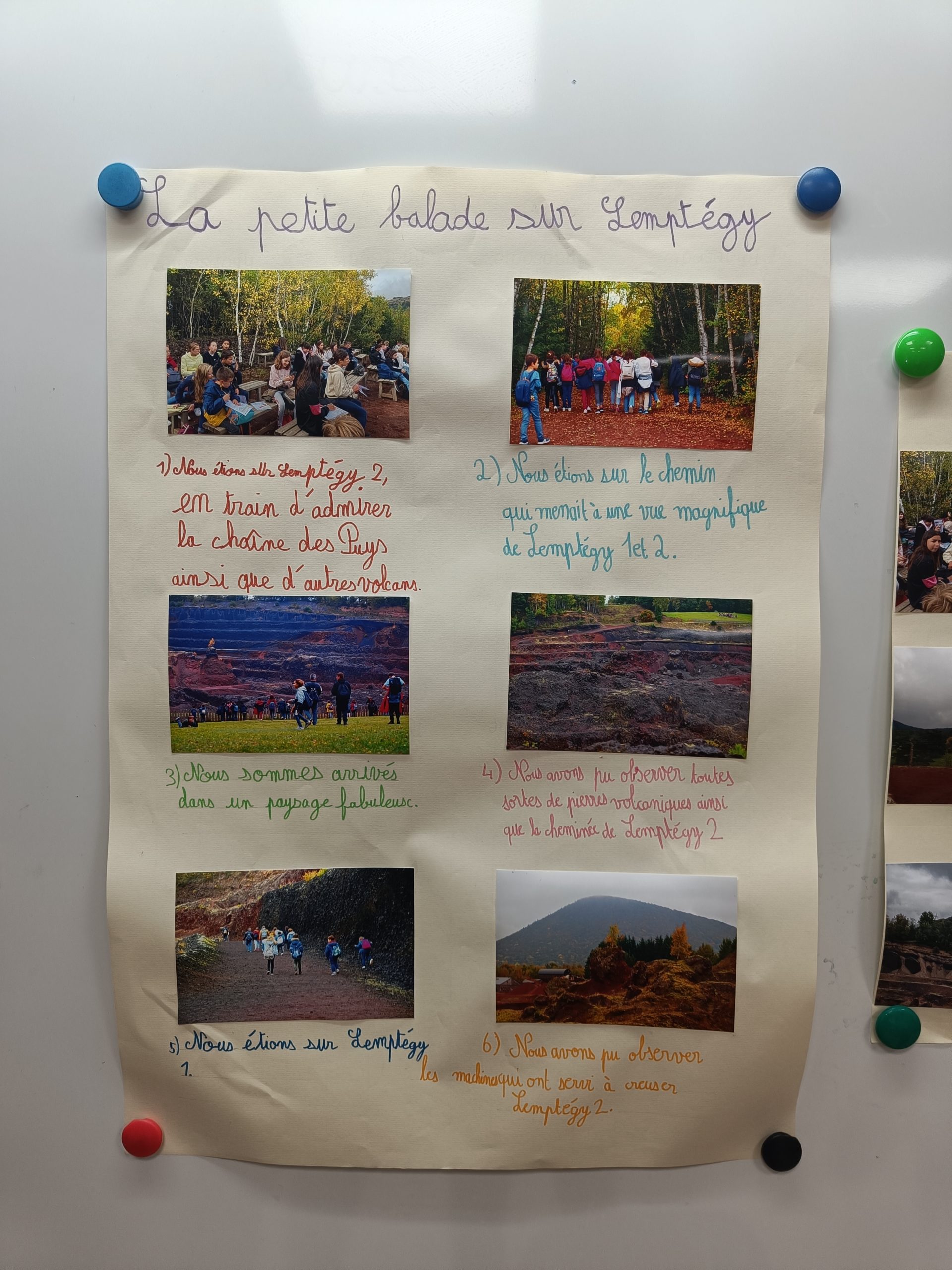 Chez les CM, retour sur le voyage en Auvergne qui s’est déroulé avec les 6e et les 5e, panneaux explicatifs et volcans en construction.