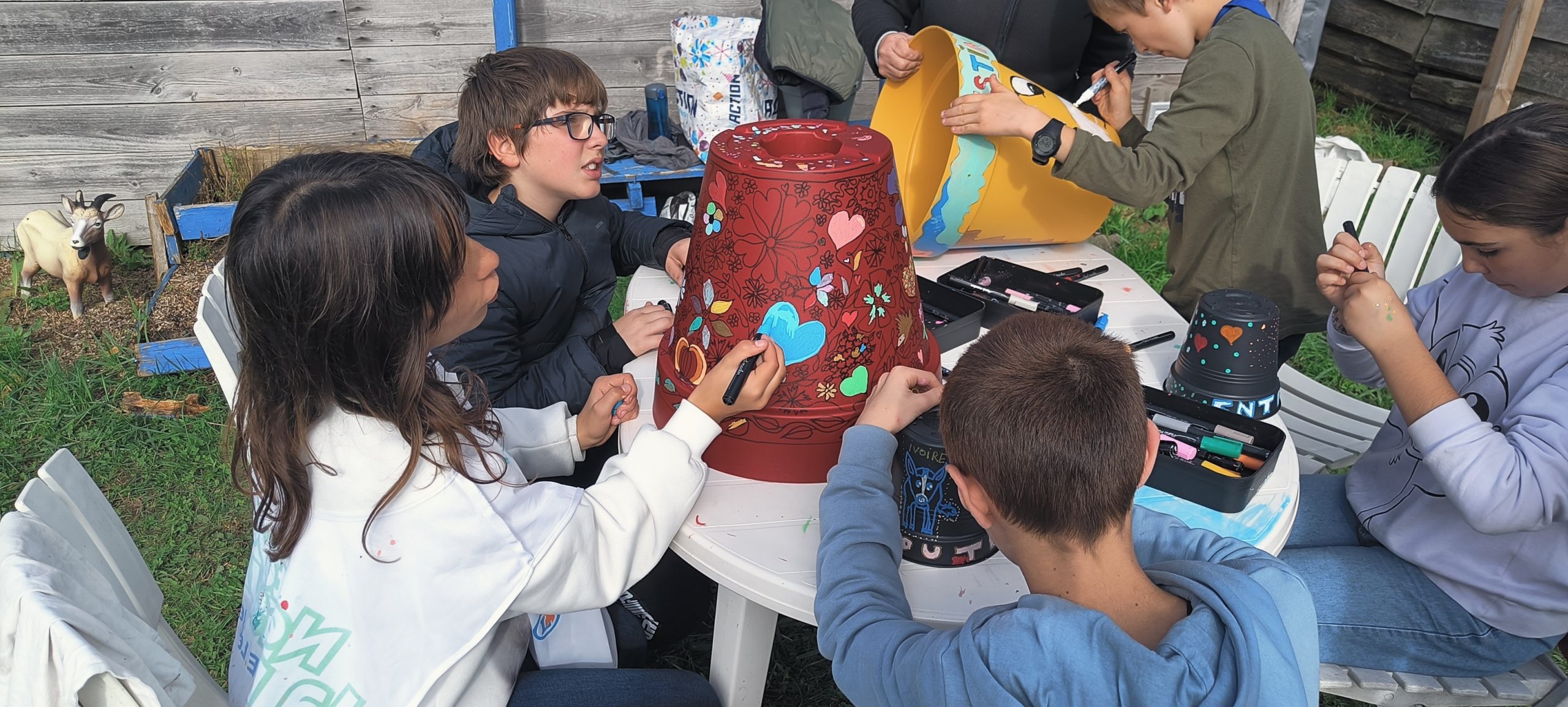 Ce vendredi 18 octobre, les élèves de sixième se sont retrouvés pour une journée de cohésion à la cab’âne rose.Autour de Kiwi, Vent d’ange, Rosée fine, Lilas, Rome et Ivoire mais aussi bien entourés de tous les animateurs; les élèves ont participé à différents ateliers autour de la bienveillance, l’estime de soi, l’entraide ou encore l’écoute.Les élèves ont pu partager une partie de leur chemin du retour avec les ânes et tous sont repartis avec de grands sourires et de la boue plein les bottes !