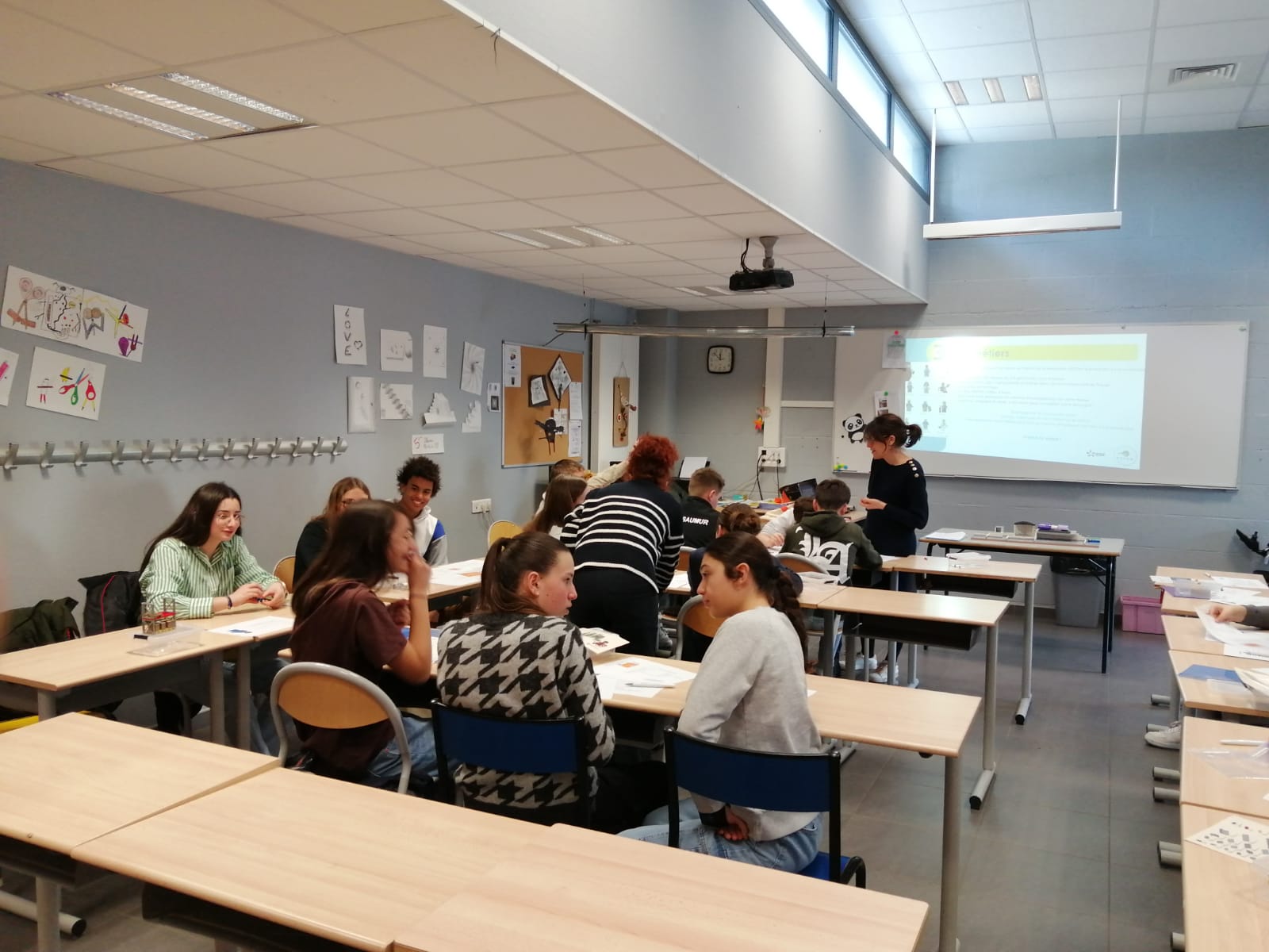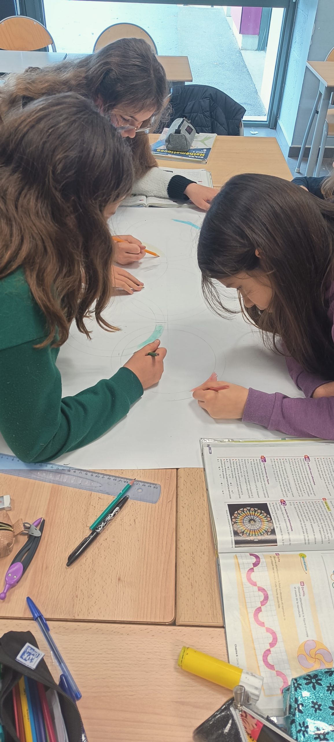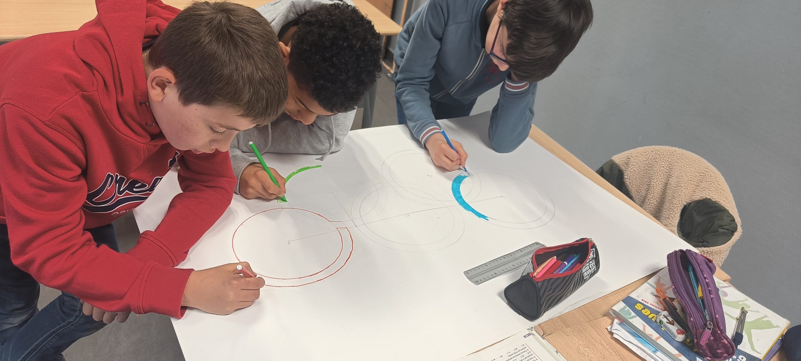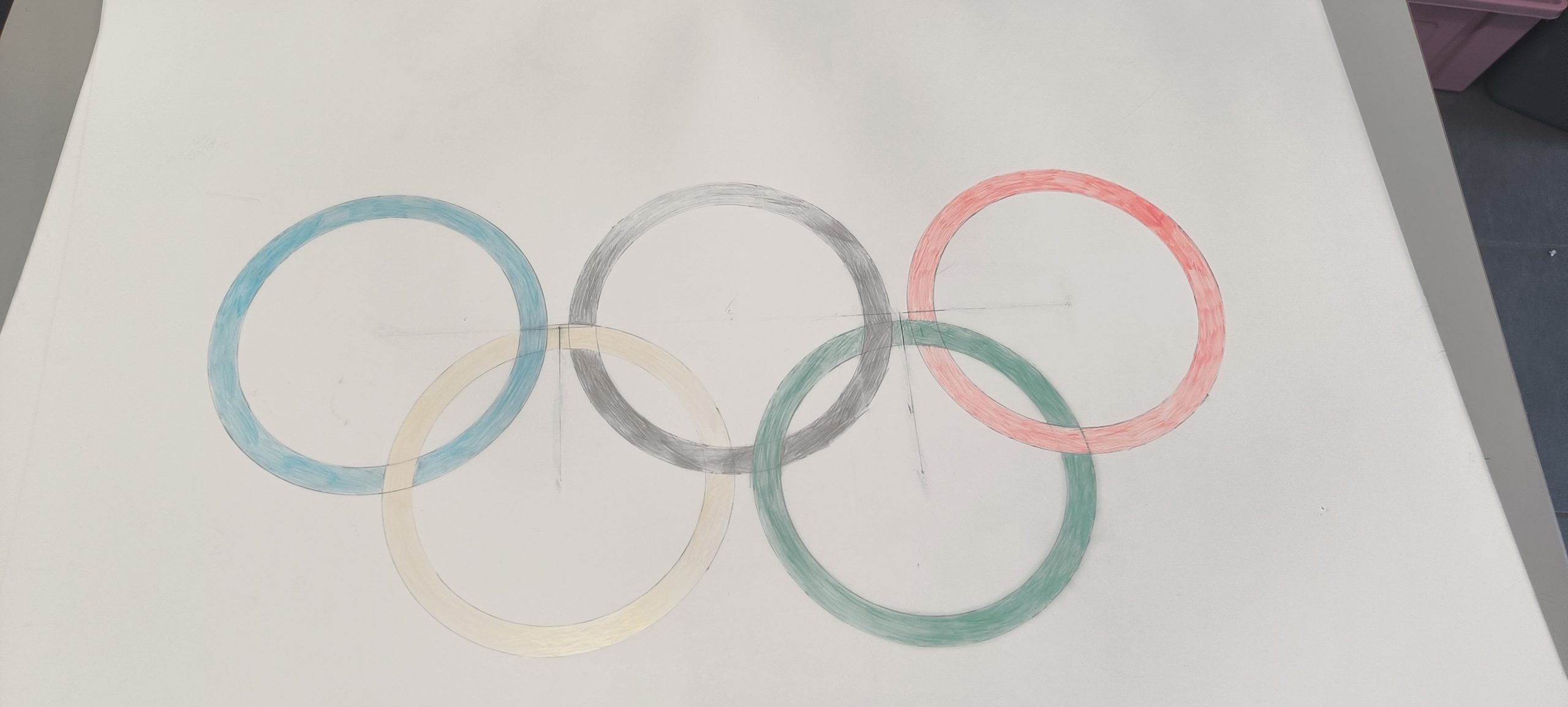 Les élèves de sixième ont réalisé les anneaux olympiques en grand format.