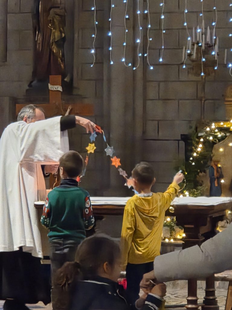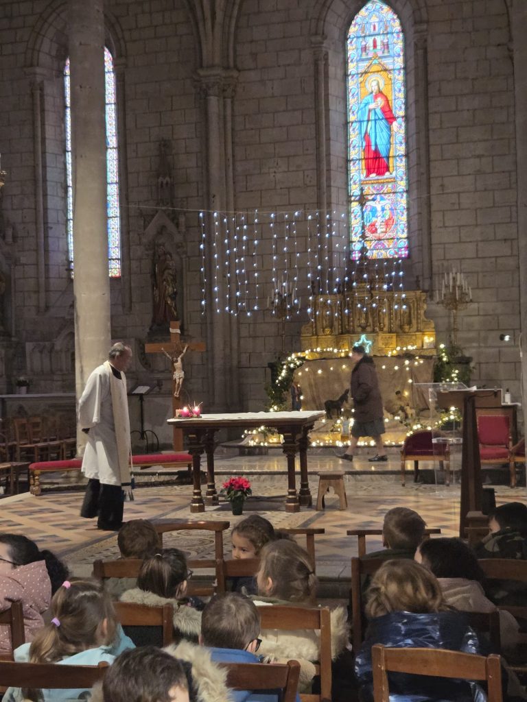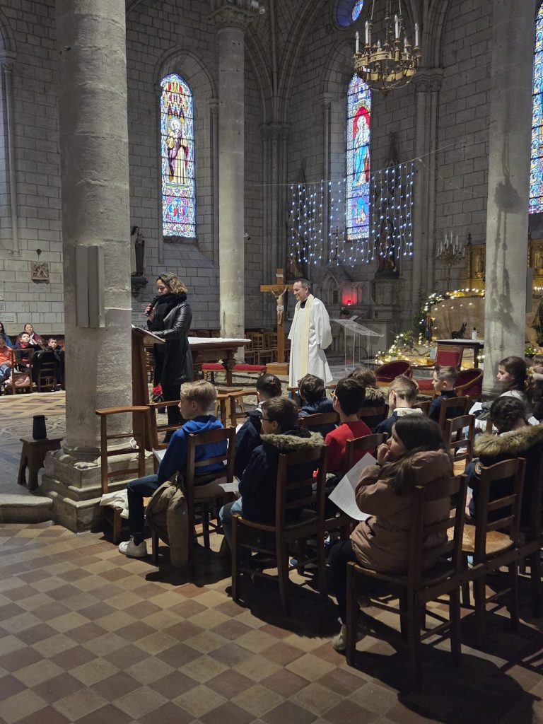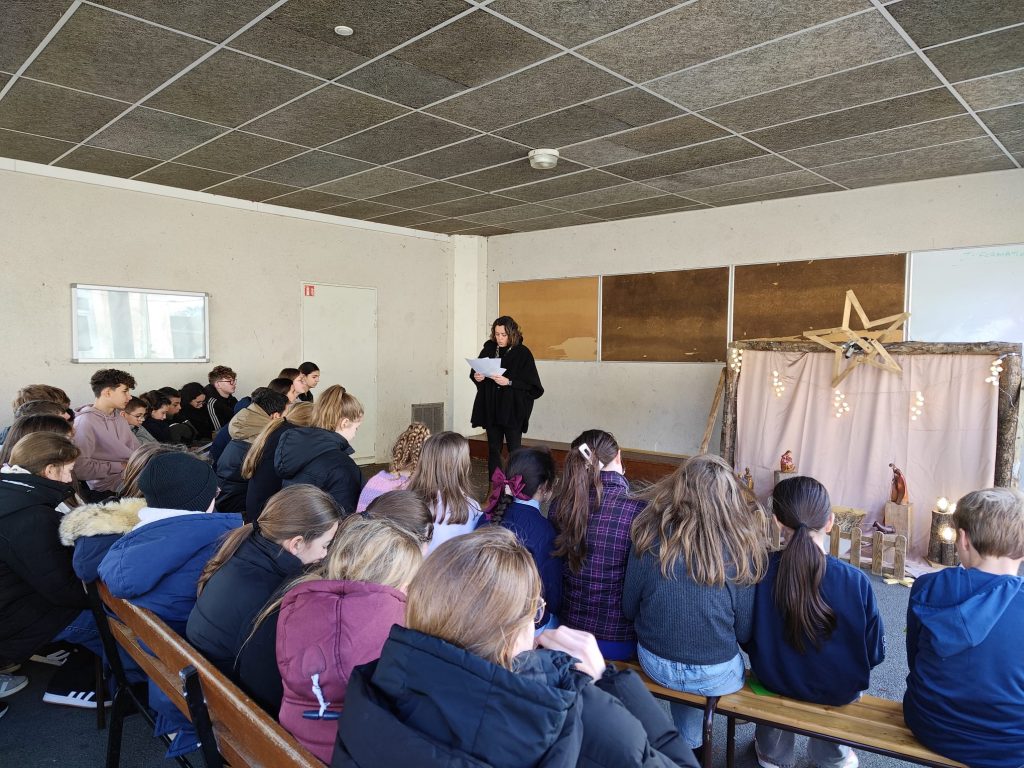 Cette semaine, nous avons vécu deux temps fort avec les élèves.Un à l’église pour les élèves de primaire et un devant la crèche dans la cour du collège pour les collégiens.