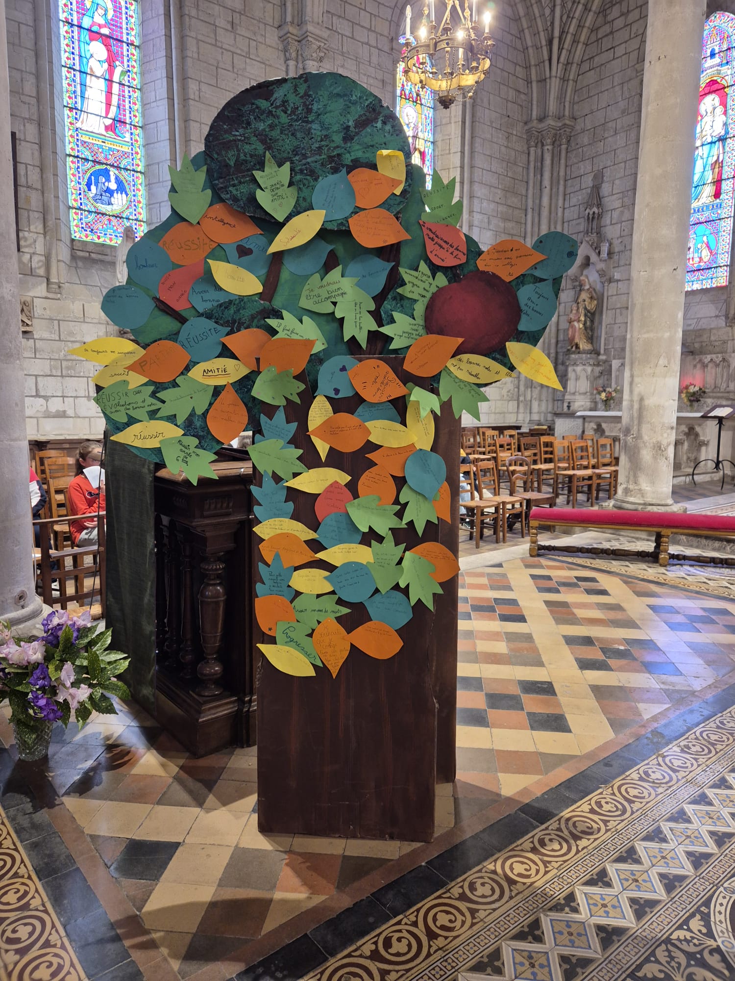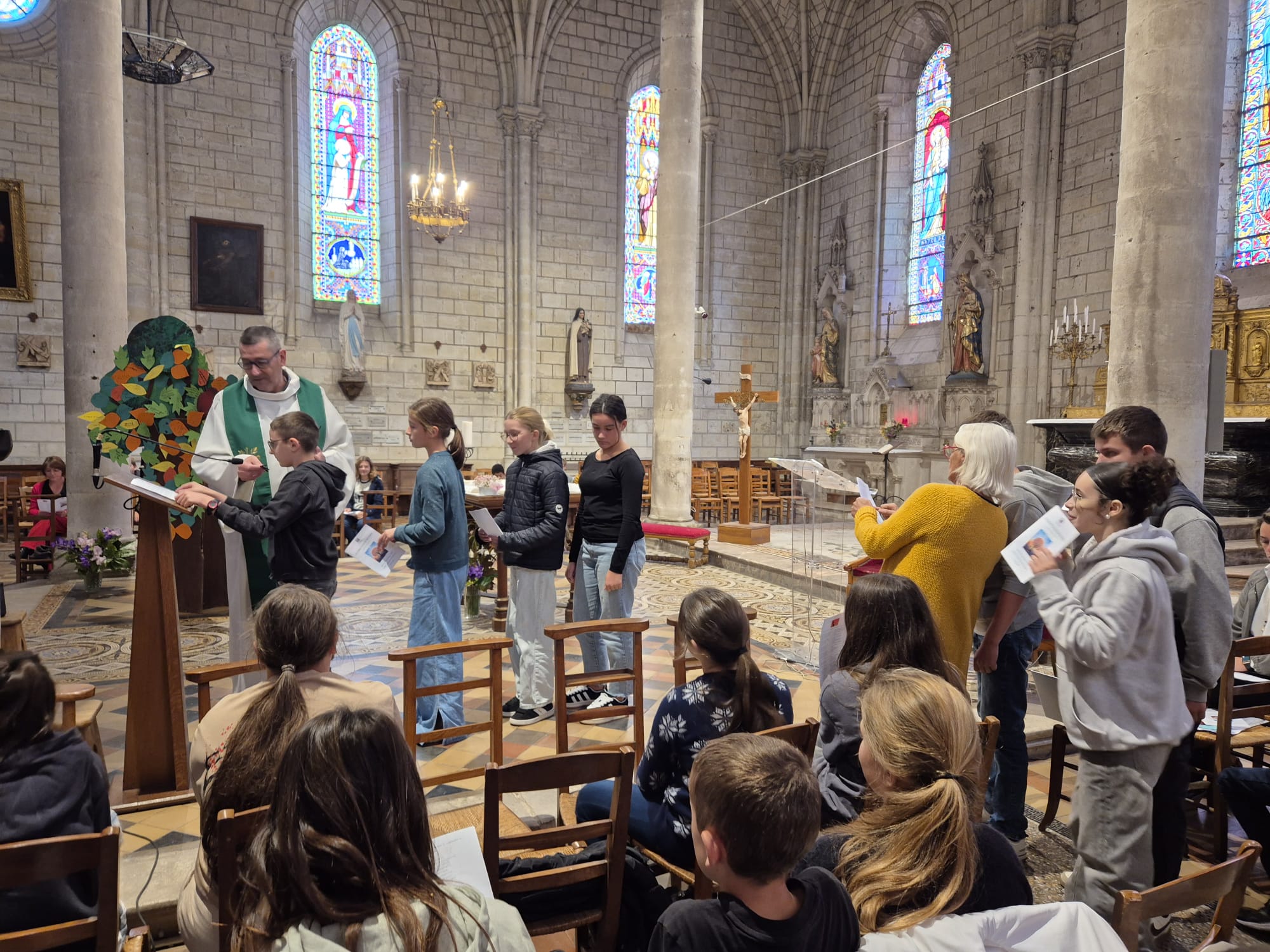 Mardi 23 septembre a eu lieu la célébration de rentrée de l’Institution. Les collégiens se sont retrouvés à l’Eglise de Bourgueil entourés de toute l’équipe éducative et du père Jean Pierre pour chanter et accrocher à l’arbre leur feuille portant un mot, un souhait ou un vœu pour l’année scolaire à venir.