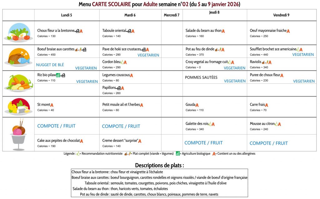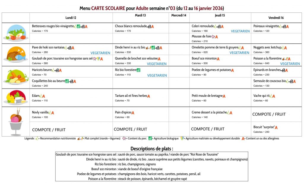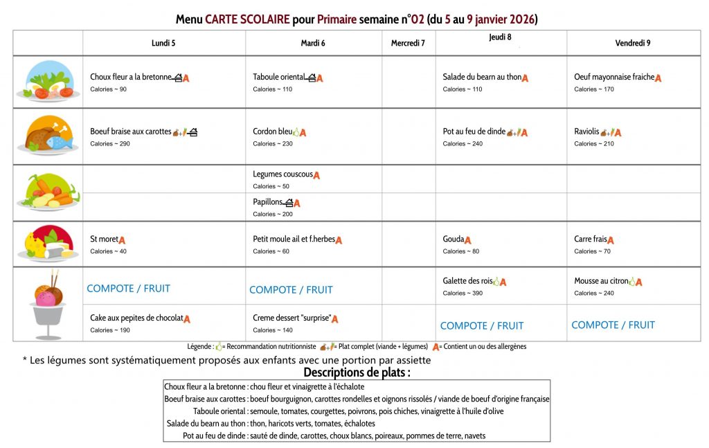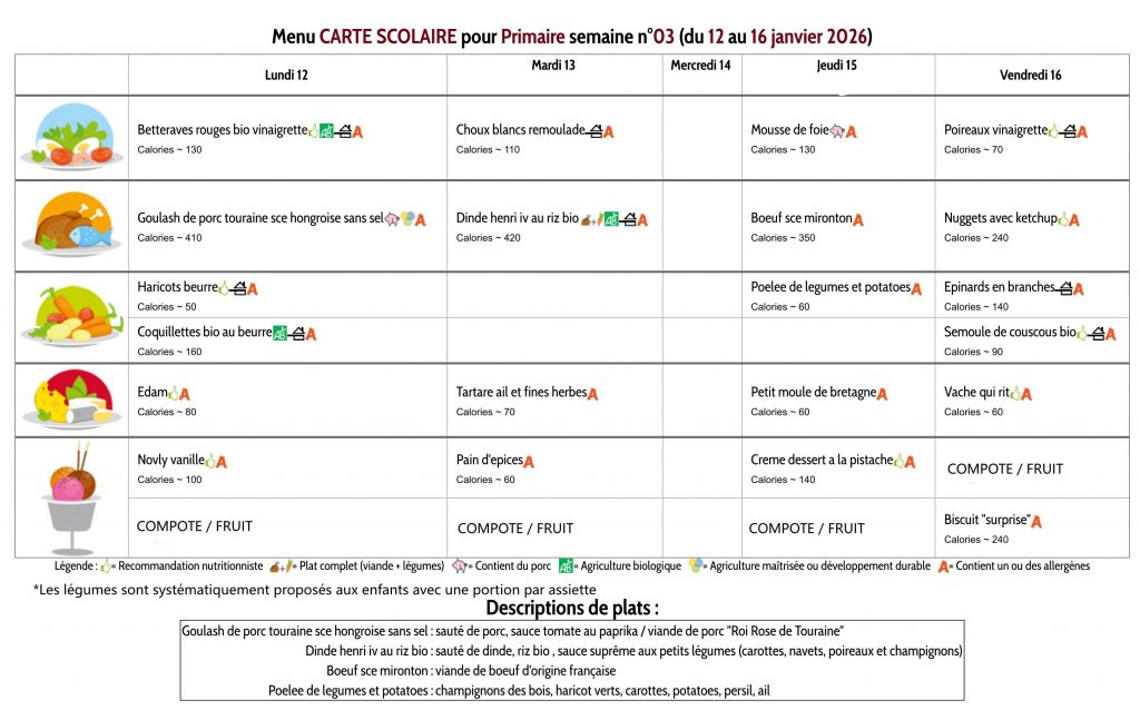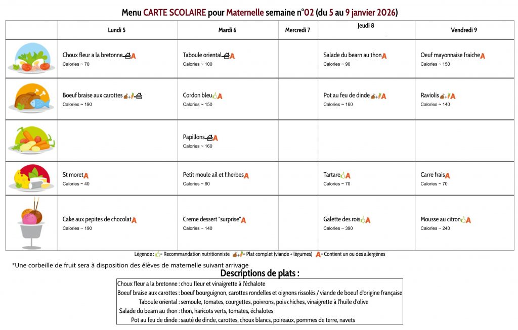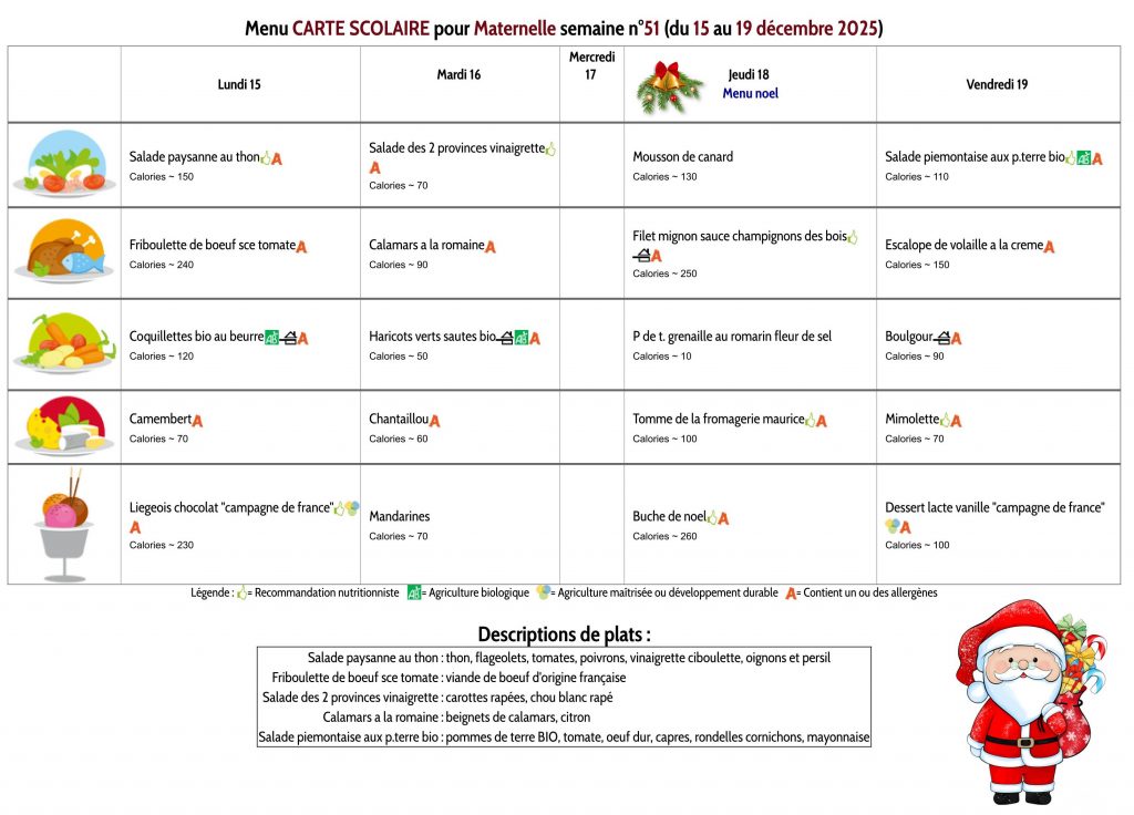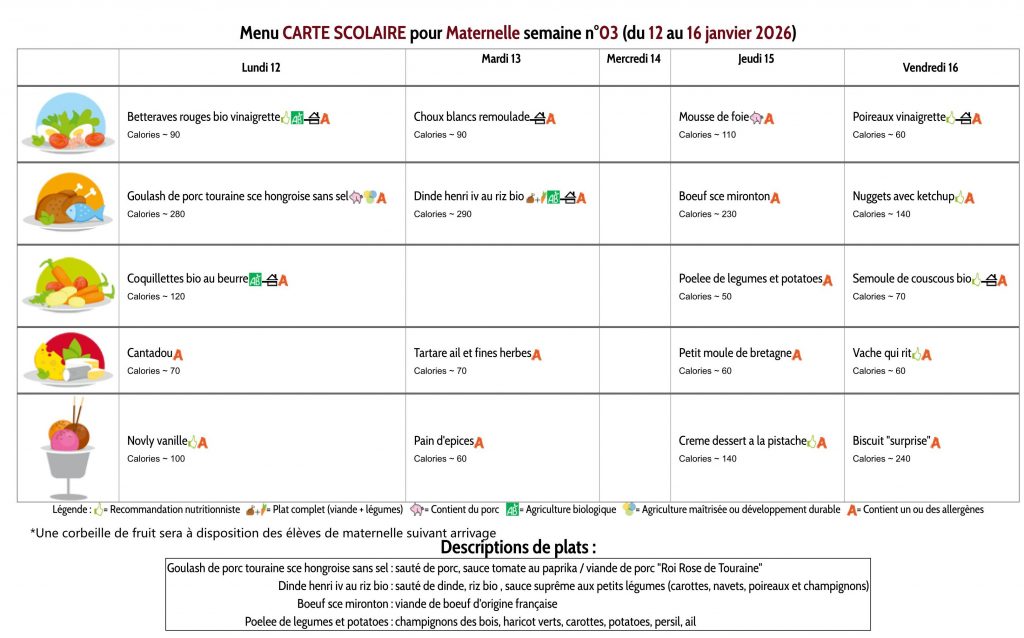 Les menus des maternelles